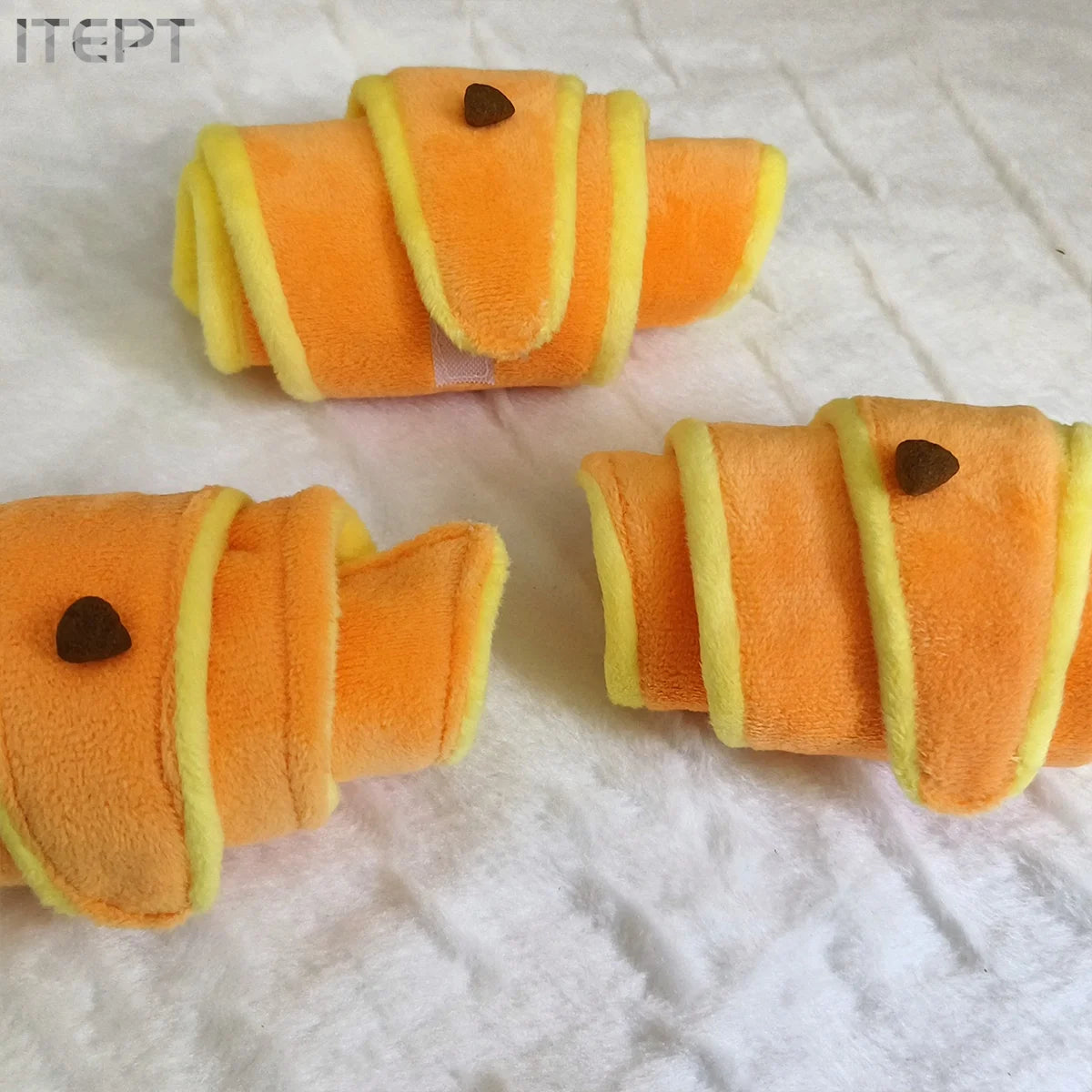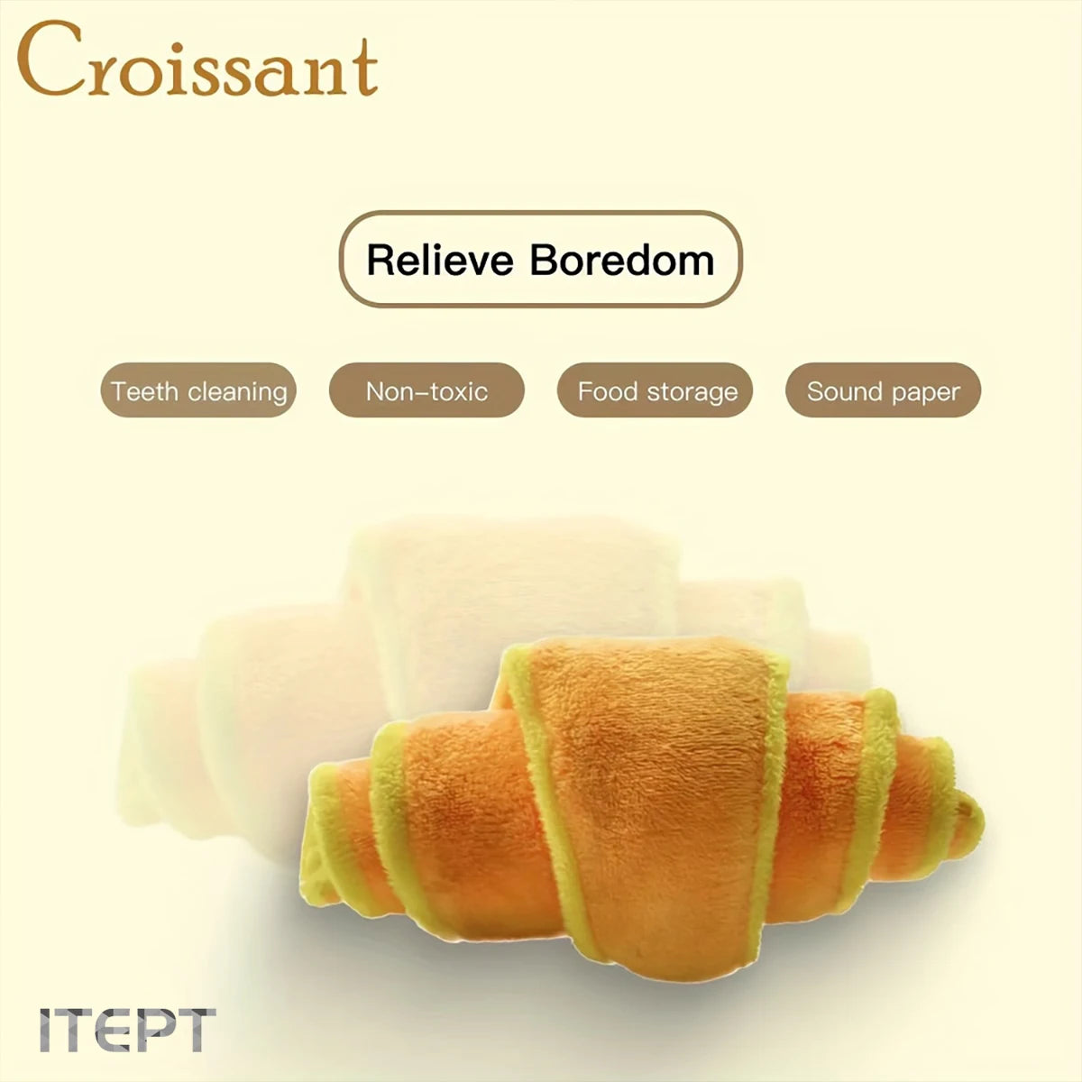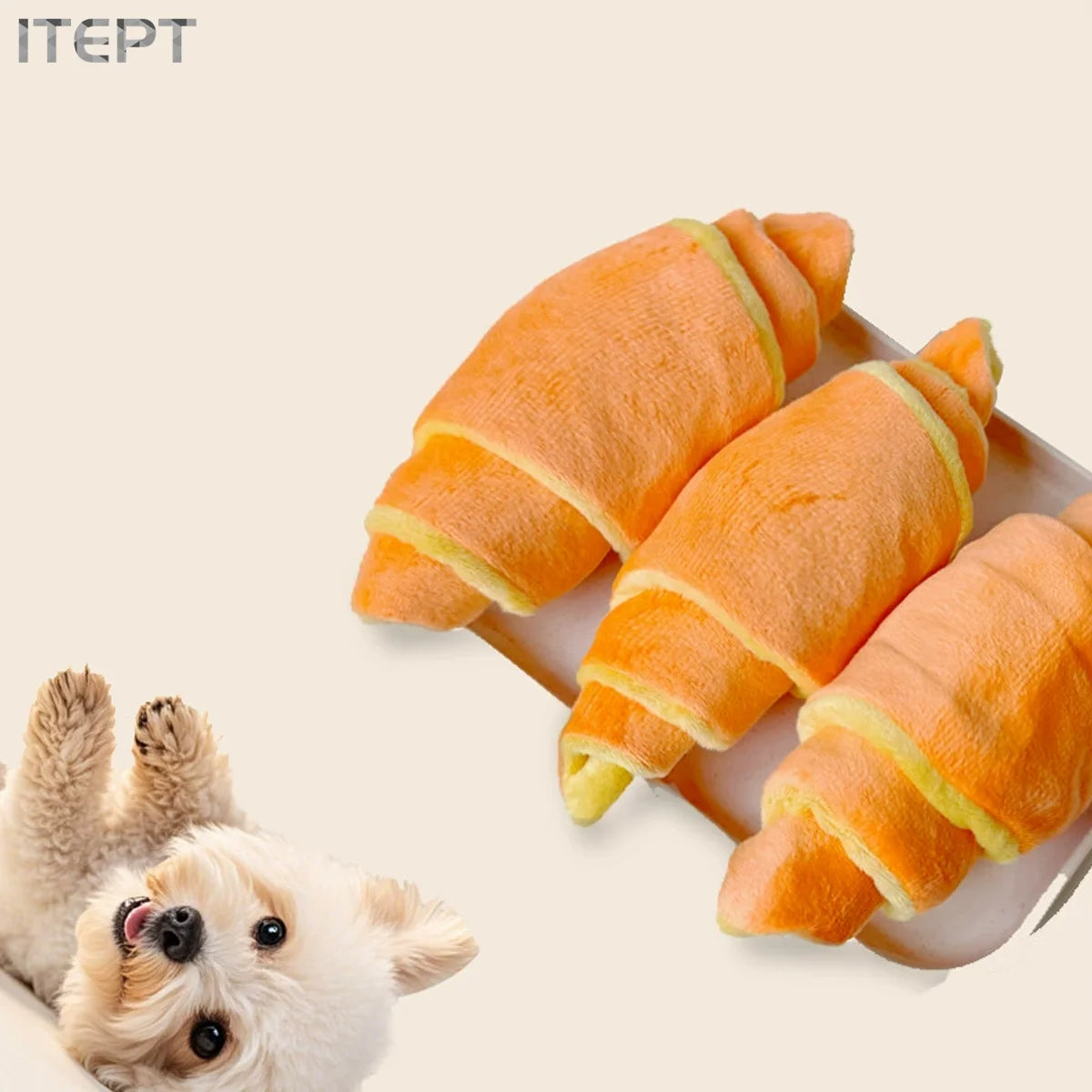 1pc Plush Croissant Dog Toy, Interactive Squeaky Treat Dispensing Pet Plaything, Durable Soft Stuffed Animal, for Small to Medium Dogs, Happy and Intelligent Pet Game, Without Battery
