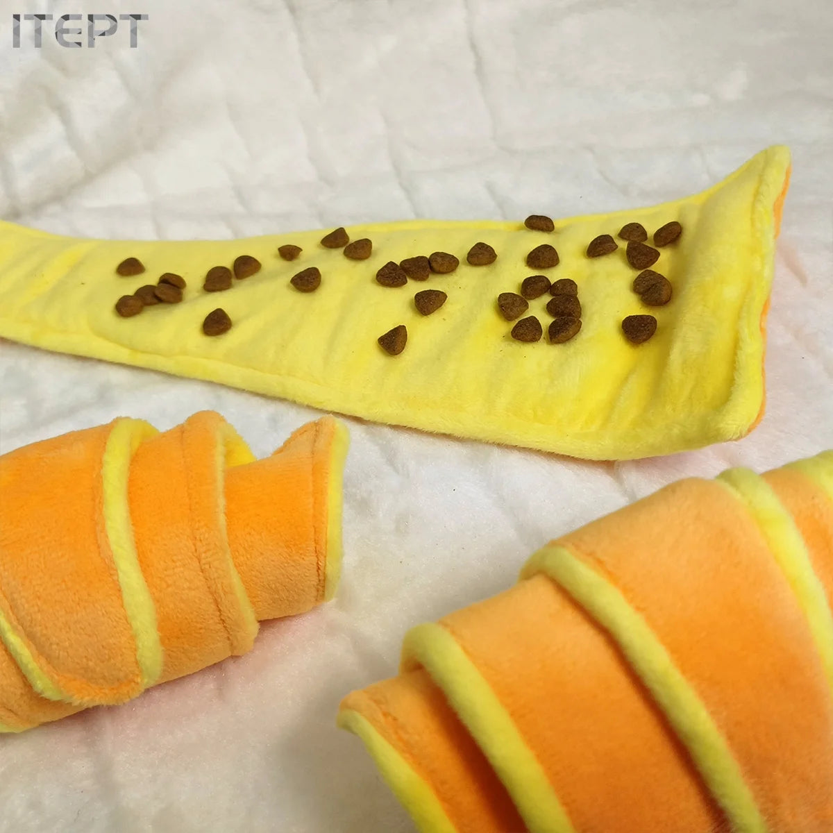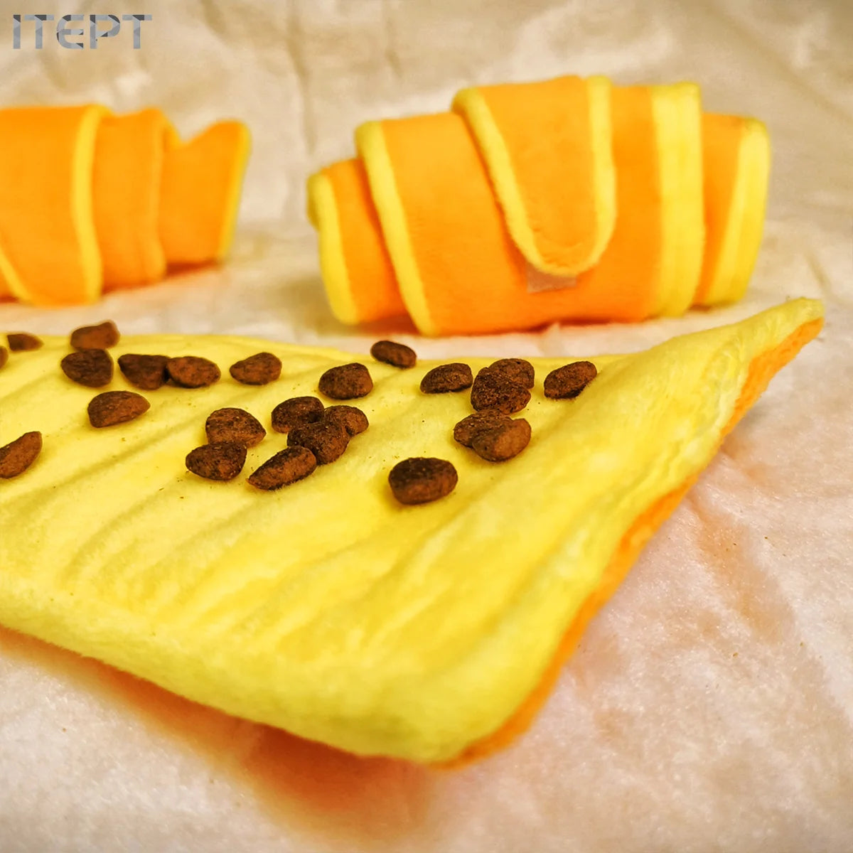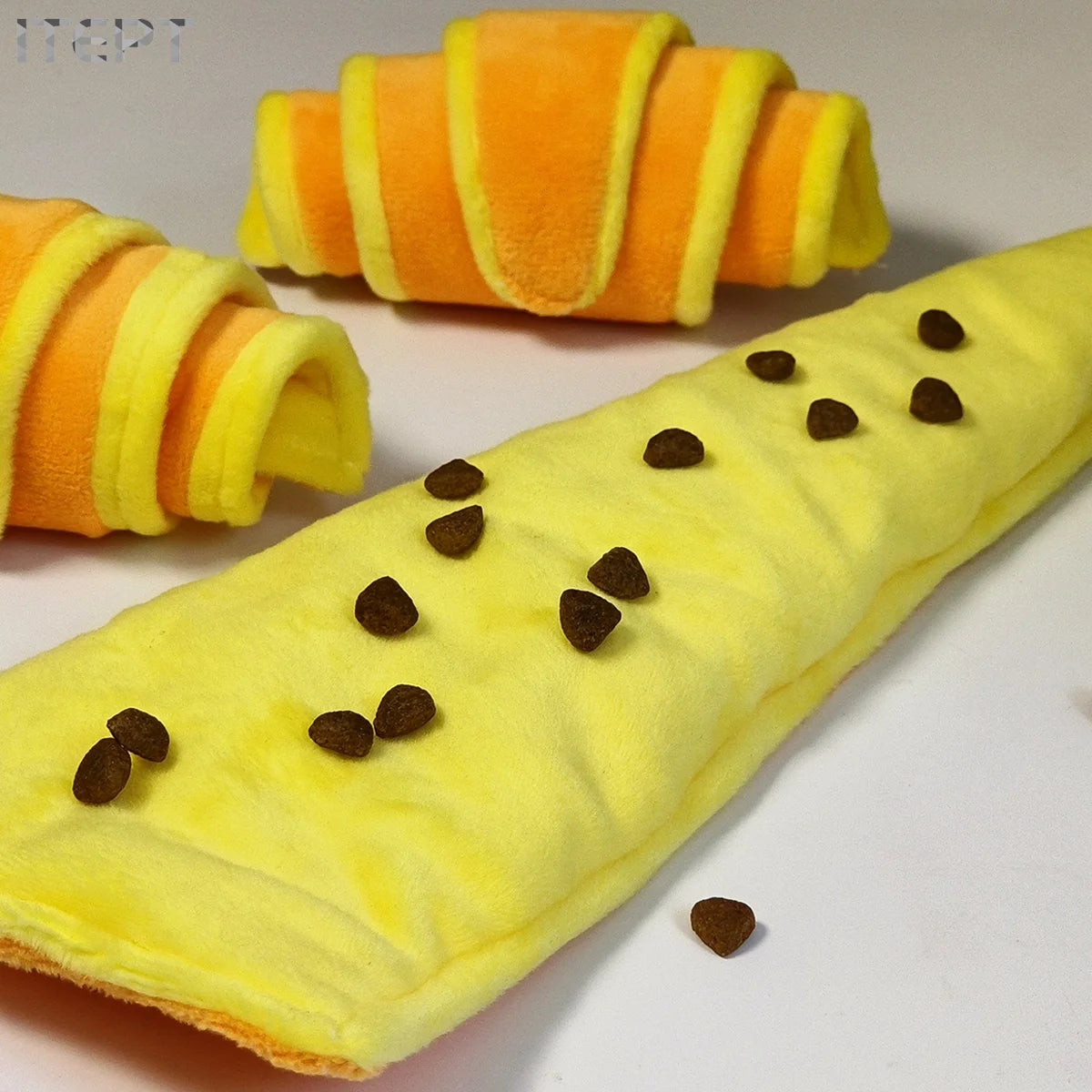 1pc Plush Croissant Dog Toy, Interactive Squeaky Treat Dispensing Pet Plaything, Durable Soft Stuffed Animal, for Small to Medium Dogs, Happy and Intelligent Pet Game, Without Battery